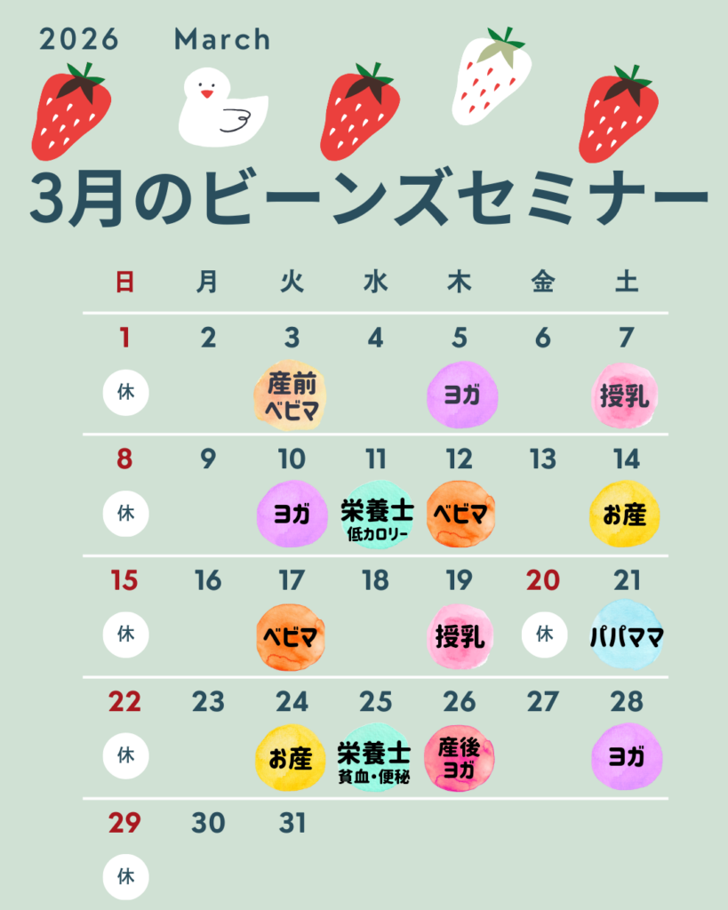 2月に引き続き、3月ものの産で出産されていない方も参加できるクラスも開催予定です!