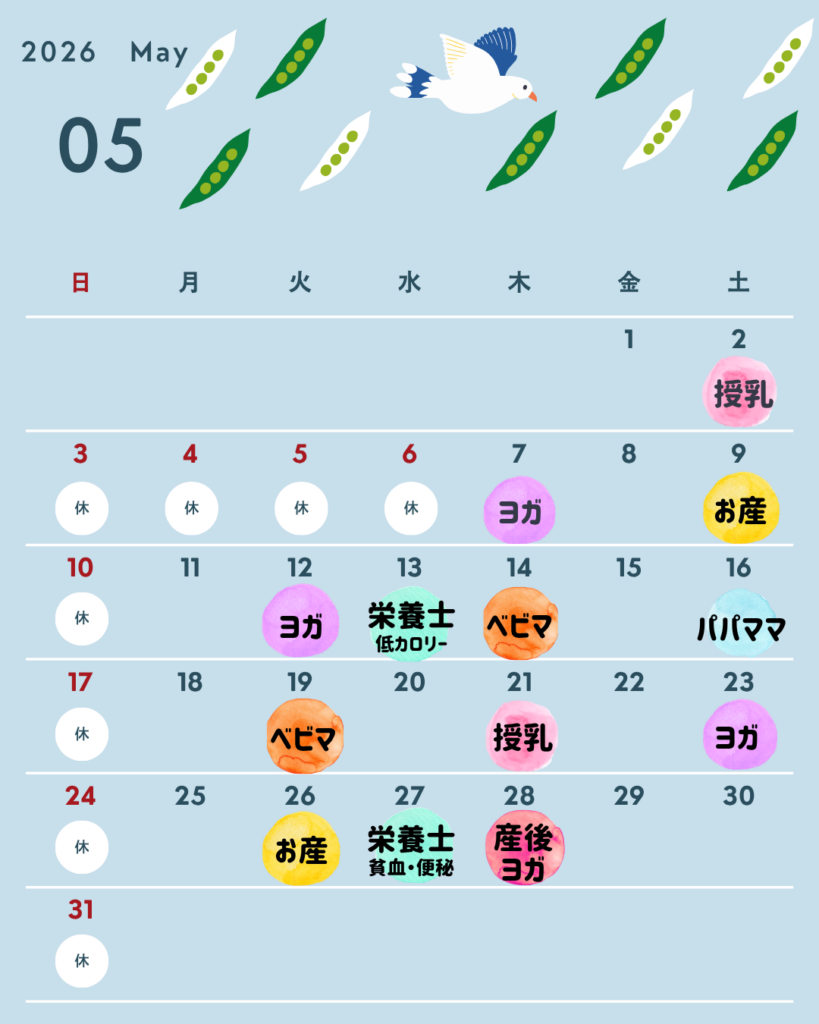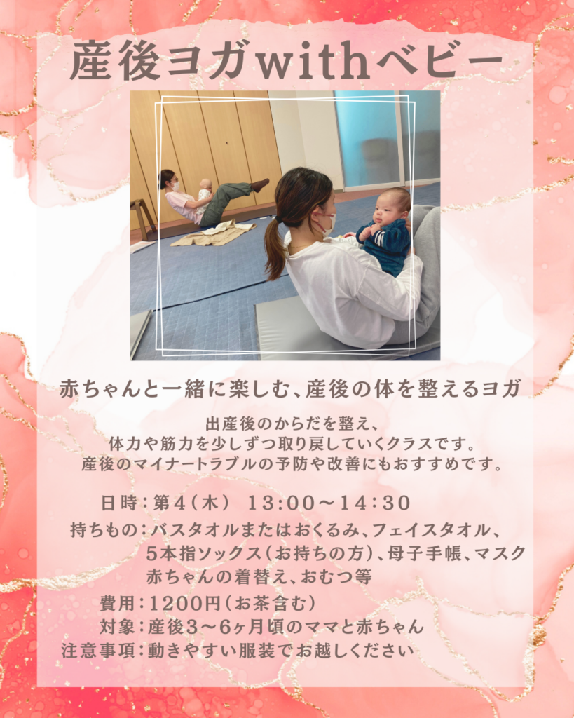 ベビーマッサージや産後ヨガなど、出産後のクラスも大人気です!