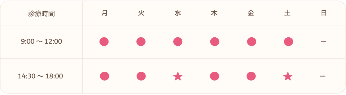 ★水・土曜日の午後の診療時間は14:30〜16:00、